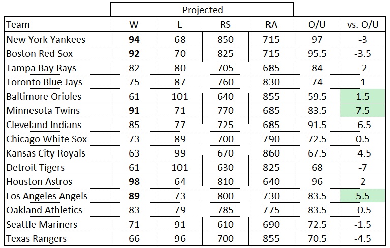 American League Projected Standings