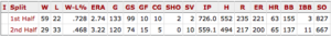 Here is a screen shot from Baseball-Reference of Chris Sales Career numbers in the 1st half vs the 2nd half.